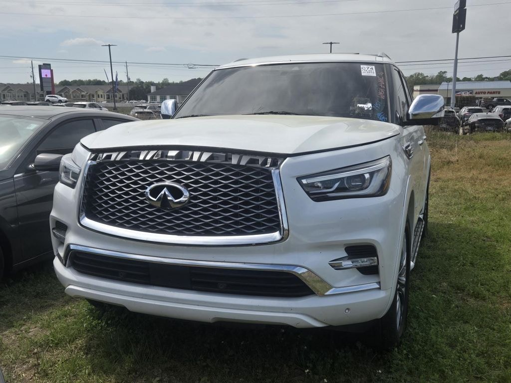 The leather seats in this 2019 INFINITI QX80 are a must for buyers looking for comfort, durability, and style. This 2019 INFINITI QX80 's Forward Collision Warning system alerts the driver to potential front-end collisions, enhancing safety. Start this INFINITI QX80 from inside with remote start. The vehicle features a high end BOSE stereo system. Protect this vehicle from unwanted accidents with a cutting edge backup camera system. This INFINITI QX80's Lane Departure Warning keeps you safe by alerting you when you drift from your lane. The installed navigation system will keep you on the right path. The vehicle is pure luxury with a heated steering wheel. This 2019 INFINITI QX80 has auto-adjust speed for safe following. This vehicle features a hands-free Bluetooth phone system. Enjoy the convenience of the power liftgate on this vehicle. It shines with clean polished lines coated with an elegant white finish. The vehicle has a V8, 5.6L high output engine.